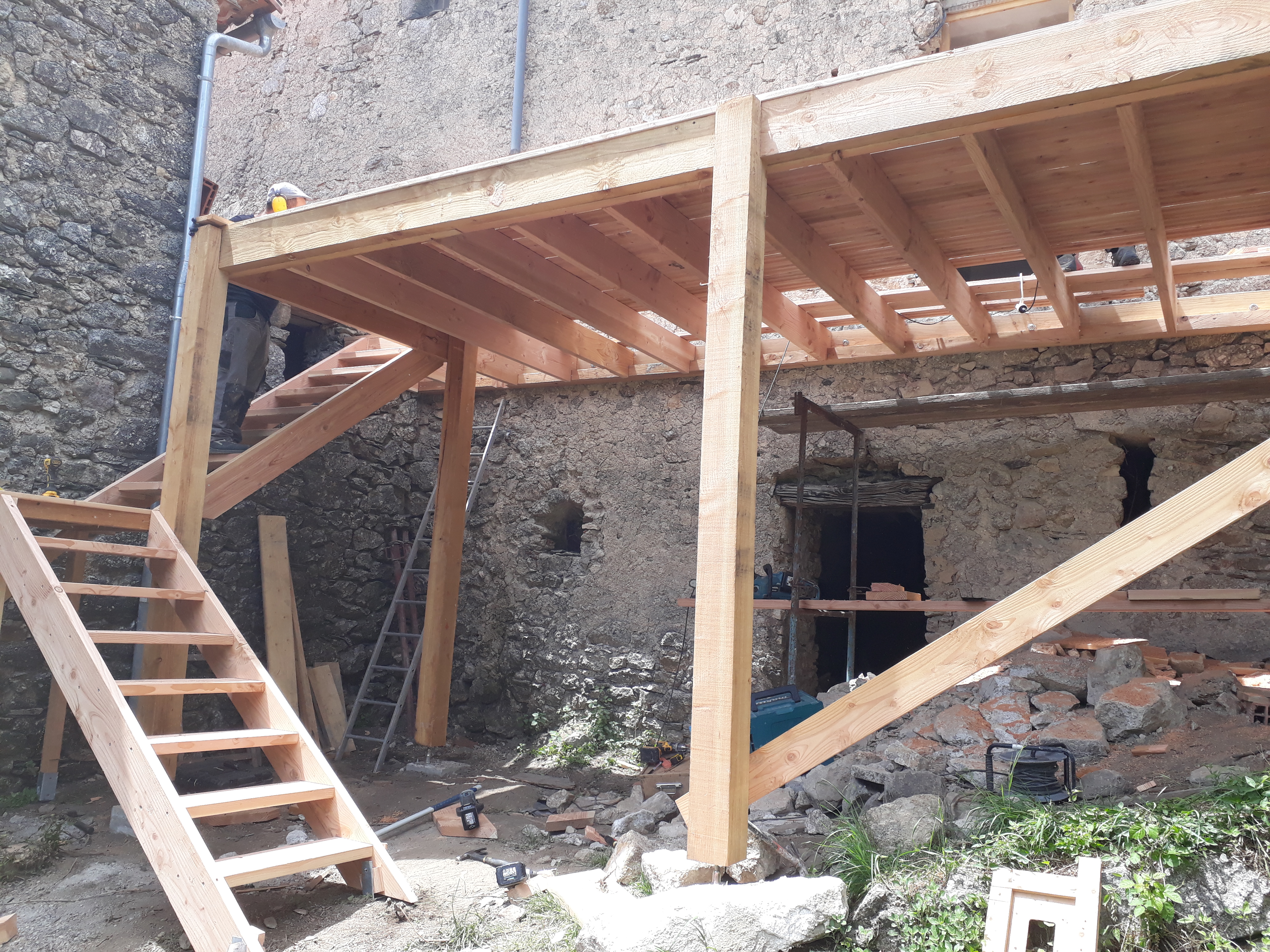 Nous réalisons tout type de structures en bois, intérieures ou extérieures : escaliers simples, terrasses, mezzanines, cabanes, pergolas, coursives …